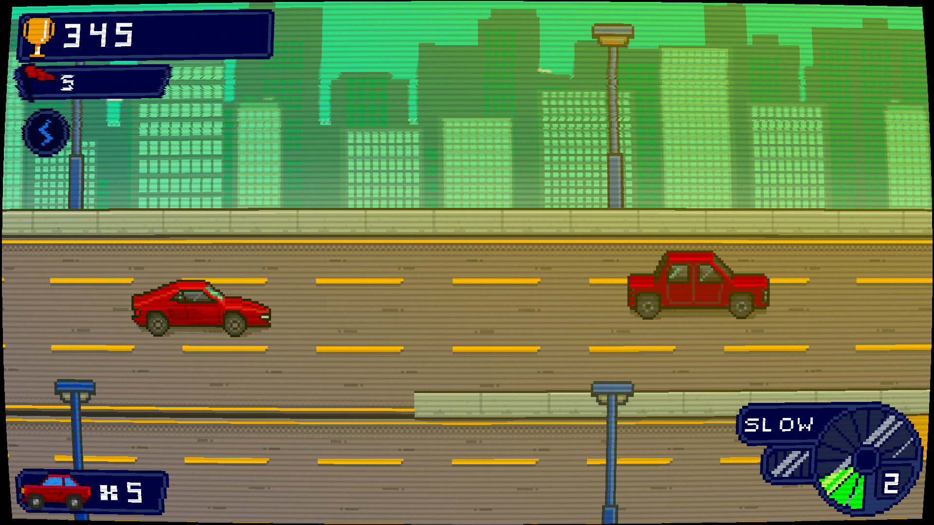 El pixel art es muy bonito. Sería interesante que al cambiar la marcha del vehículo lo tuvieras que hacer manualmente, y si no lo haces, el auto se detenga o pierda una vida.